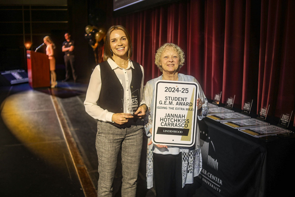 Writing Specialist Jannah Hotchkiss Carrasco won the Student G.E.M. Award (Going the Extra Mile). Nominated by Lindenwood students, Hotchkiss Carrasco was recognized for an ongoing commitment to providing expert service to the students. A student-worker said Hotchkiss Carrasco “genuinely cares about making the writing center a place where students want to be.” The student continued to highlight how Hotchkiss Carrasco does “the little things” to show students how much she cares, cultivating a second home in the writing center.