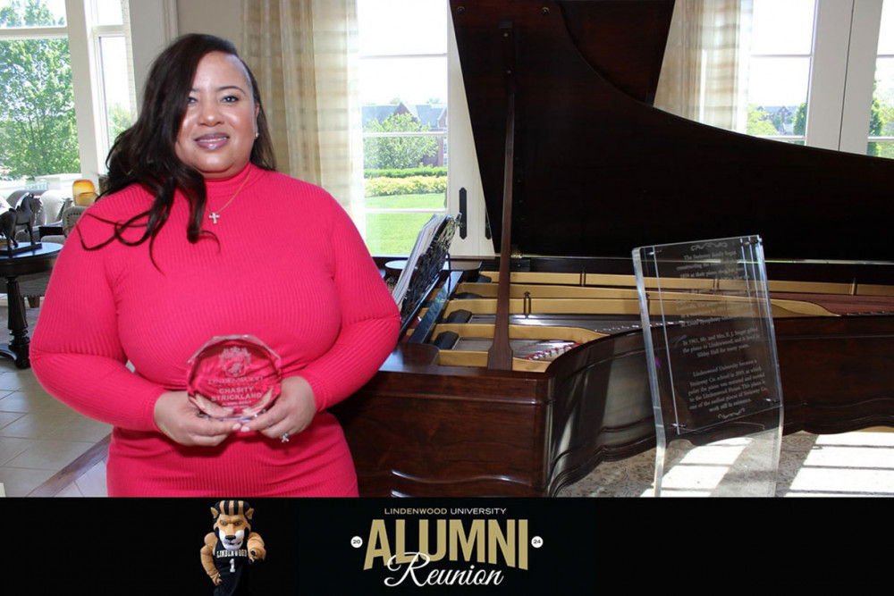 Chasity Strickland received the Alumni Merit Award from Lindenwood University in April.