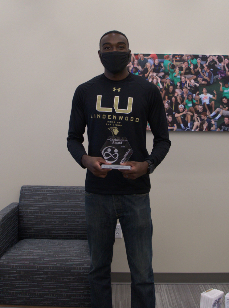 Keye was selected for this honor following his work with the Morgan family as Adam considered his college prospects. “I met Jeremy a couple of years ago when I was looking at colleges to attend. He was very welcoming and professional,” Adam shared. “Lindenwood was in my top two, and Jeremy’s belief in me was what made Lindenwood a top contender. He understands and accepts all types of learners.” Adam presented the award to Keye at a ceremony on-campus in September.